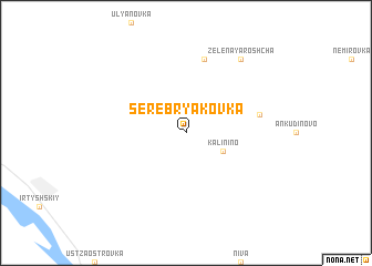 Serebryakovka is a town in the Omskaya Oblast' region of Russia. An overview map of the region around Serebryakovka is displayed below.