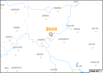 Qujiu is a town in the Guangxi region of China. An overview map of the region around Qujiu is displayed below.