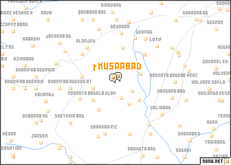Mūsáābād is a town in the Hamadān region of Iran. An overview map of the region around Mūsáābād is displayed below.