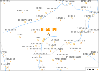Hagonp'a is a town in the Hamgyŏng region of Korea, North. An overview map of the region around Hagonp'a is displayed below.