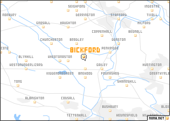 regional and 3d topo map of Bickford, United Kingdom ::