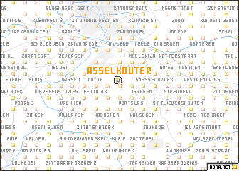 Asselkouter is a town in the Oost-Vlaanderen region of Belgium. An overview map of the region around Asselkouter is displayed below.